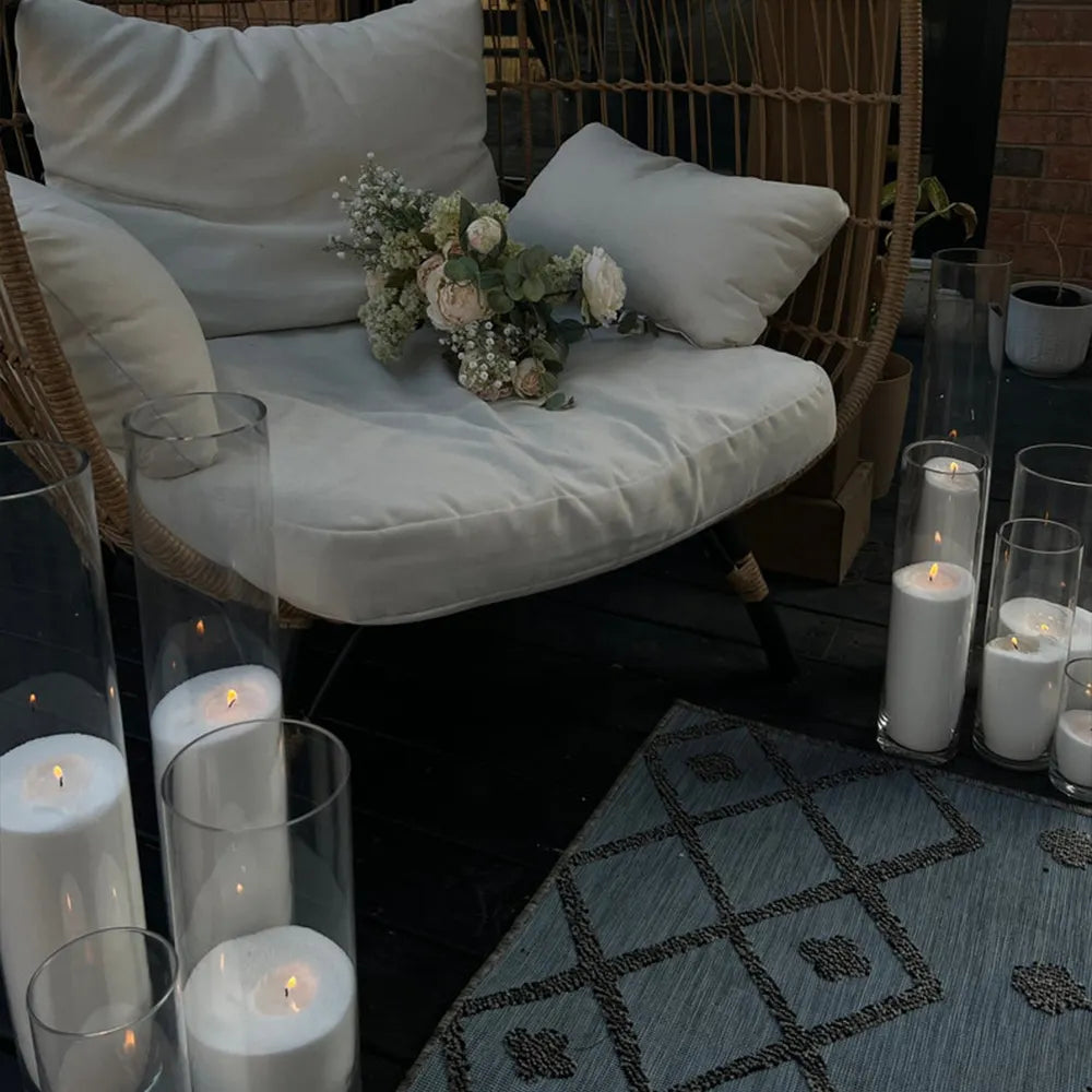 Använd sandljus för att ändra stämningen efter säsong. Välj vita ljus för vinterkänsla, blå eller turkos för sommaren och rosa för en vårig, fräsch touch. Perfekt för att snabbt förnya ditt hem.